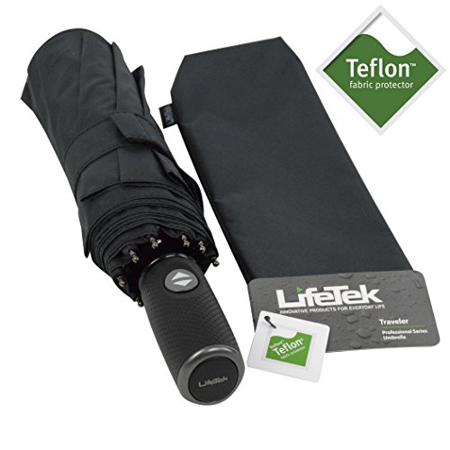 - LIFETEK'S ANNUAL SPRING SALE! TRAVELER 42 PROFESSIONAL UMBRELLA: Our most popular umbrella, the Traveler 42 is a compact wind resistant rain umbrella designed to fit in business briefcases, college backpacks, small travel totes, and glove compartments. With sleek styling, including a black wind proof canopy, rubberized comfort grip handle, and an auto open close mechanism, the Traveler 42 is the perfect size umbrella for the frequent traveler.